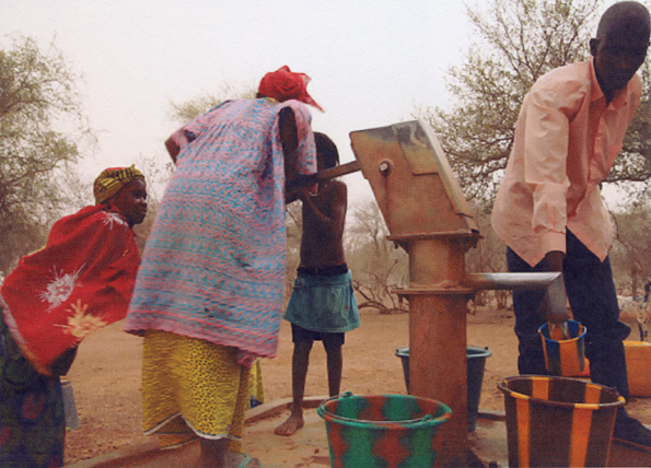 Wasser ist eine Lebensgrundlage für den Menschen. Leider sind in vielen Ortschaften innerhalb des Sahelgebietes die Bewohner nur auf das Wasser angewiesen, das sie entweder während der Regenzeit in Tümpeln sammeln oder das sie oft von bis zu 10 km entfernten Brunnen holen (Frauenarbeit!). Durch Tiefbrunnen (Bohrtiefe meist über 80 Meter), die wir im Rahmen unserer Arbeit schaffen, können wir viele tausend Menschen mit sauberem Wasser versorgen.